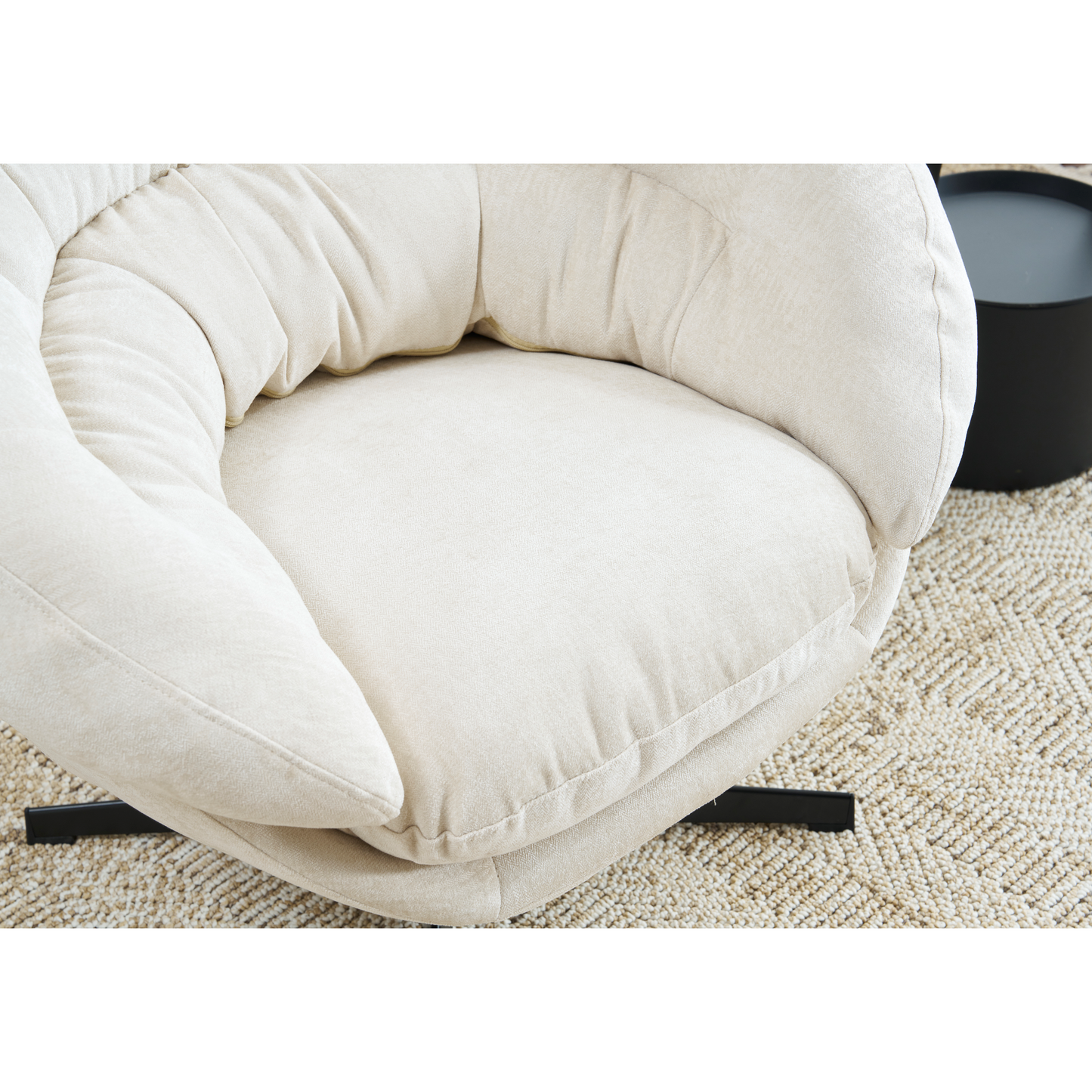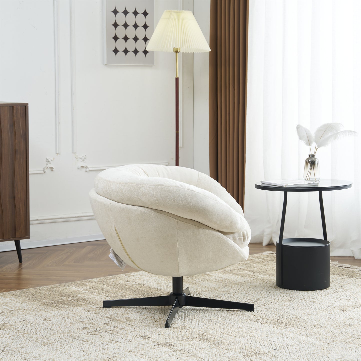 Lucvara Modern Chenille Office Chair – 360° Swivel Round Club Accent Chair with Removable Cushion, Black Metal Base, Cotton Chenille Upholstery, Beige Lounge Chair for Living Room, Bedroom, or Office