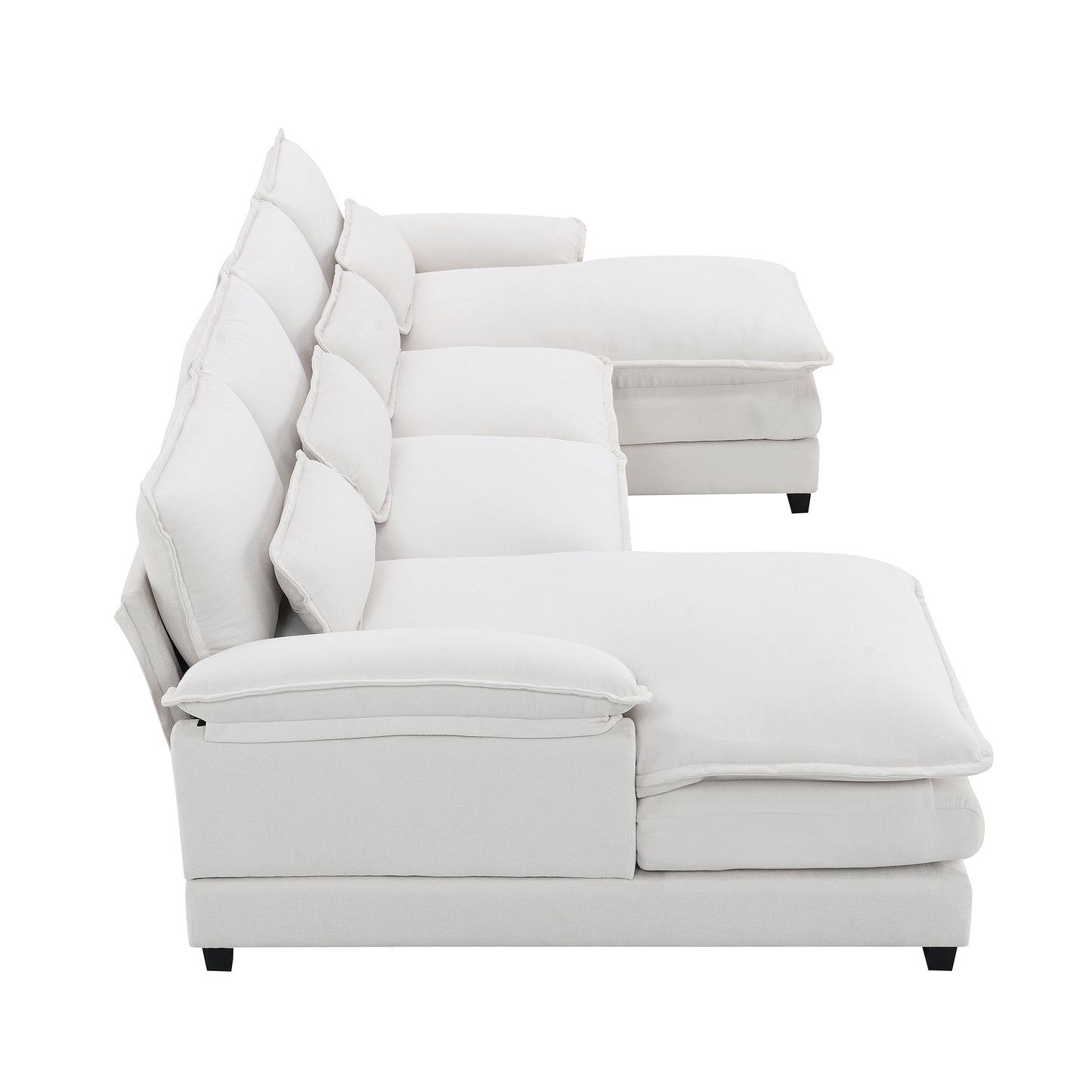 Lucvara Modern U-Shaped Sectional Sofa, 6-Seat Upholstered Sleeper Couch with Chaise Lounge and Waist Pillows, Symmetrical Sofa Furniture in Chenille or Velvet
