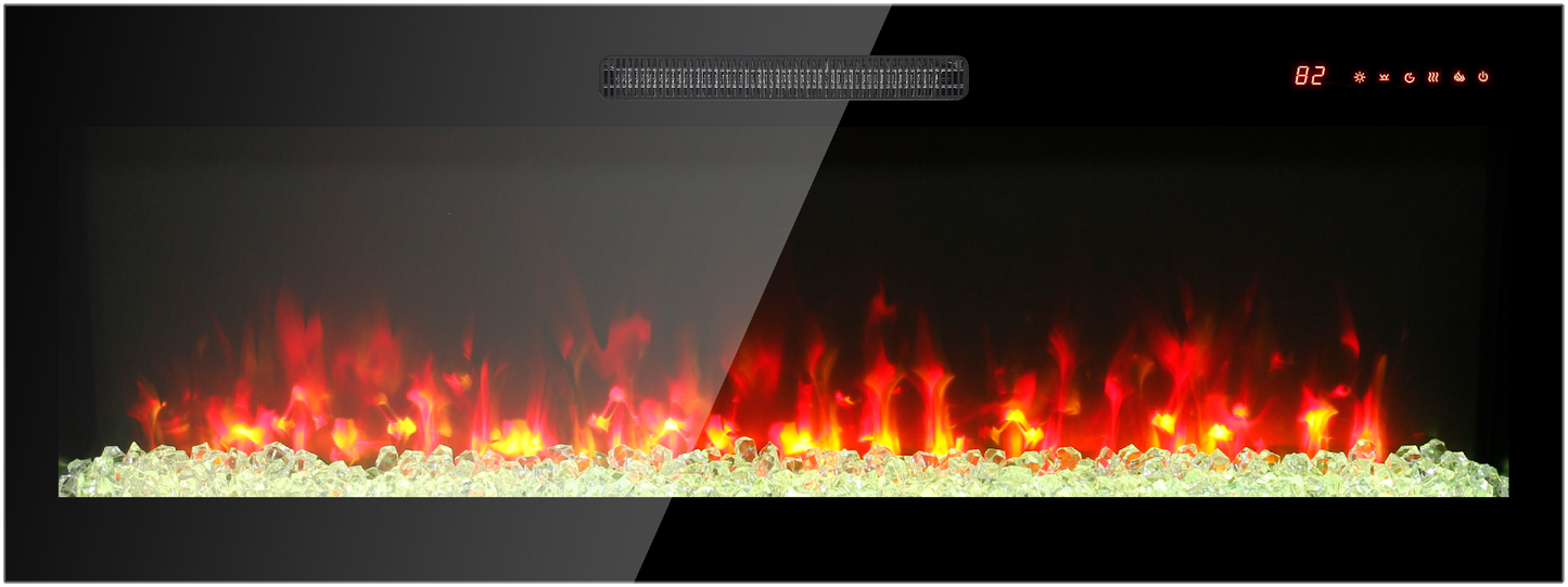 The fireplace can be wall mounted or in-wall recessed by yourself easily.The recessed electric fireplace could be fully recessed into wall easily or you can use our own installation accessories and brackets to hang this wall mounted electric fireplace on any wall in any room.