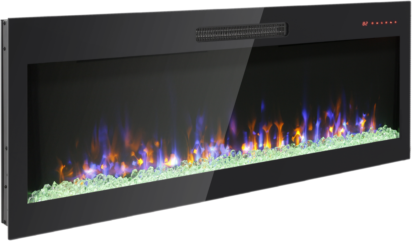 Lucvara 60-Inch Recessed Ultra-Thin Electric Fireplace, Tempered Glass Front, Wall-Mounted LED Heater with Remote, Multi-Color Flame & Ember Bed