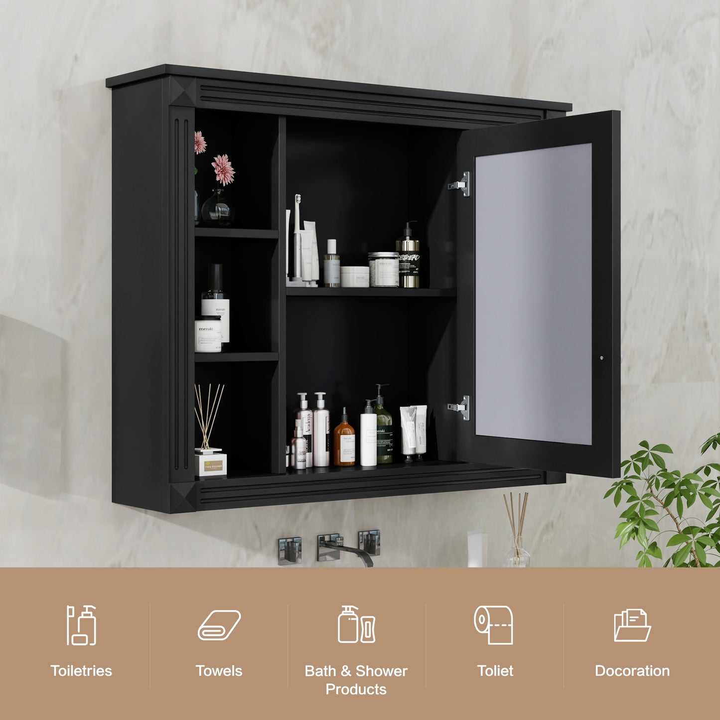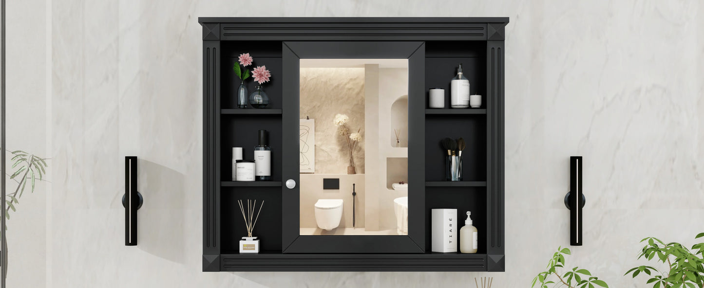 Lucvara 35x28'' Wall Mounted Bathroom Storage Cabinet – Modern Medicine Cabinet with Mirror and 6 Open Shelves, Bathroom Wall Cabinet (Vanity Not Included)