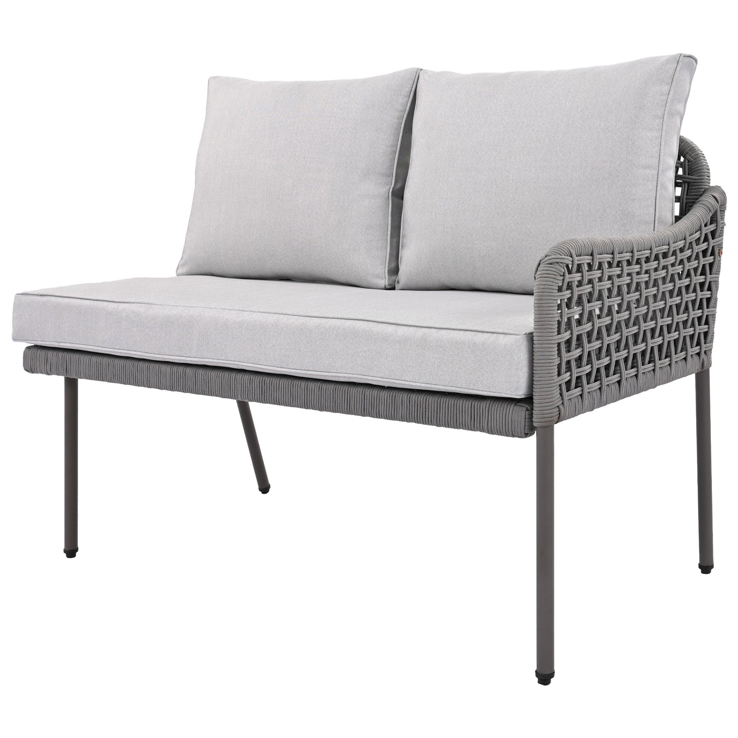 - [All-Weather Ruggedness and Durability] The patio sofa setup features a 100% steel frame, powder coated for stability and long-lasting resistance to the outdoor elements. Each individual sofa is capable of carrying up to 700 pounds. Meanwhile, the bench has a weight capacity of 400 lbs. There is absolutely no need to worry about any danger occurring while sitting on it. Even the table has a weight capacity of 350 pounds. With the excellent rope weave material can effectively protect the UV rays.