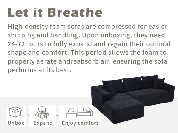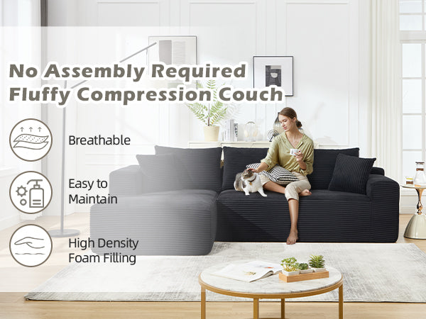 - No Assemble Required: Easy to assemble even if you are alone! Unpack the vacuum package, pat the L shape couch, and let it absorb air for about 2 to 3 days to restore it to its original status.