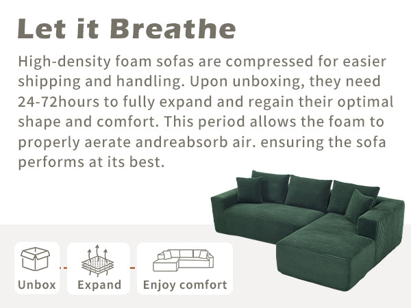 - No Assemble Required: Easy to assemble even if you are alone! Unpack the vacuum package, pat the L shape couch, and let it absorb air for about 2 to 3 days to restore it to its original status.