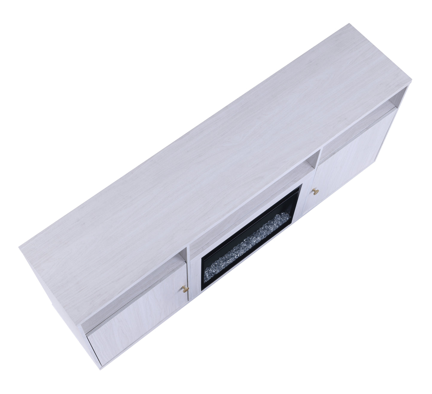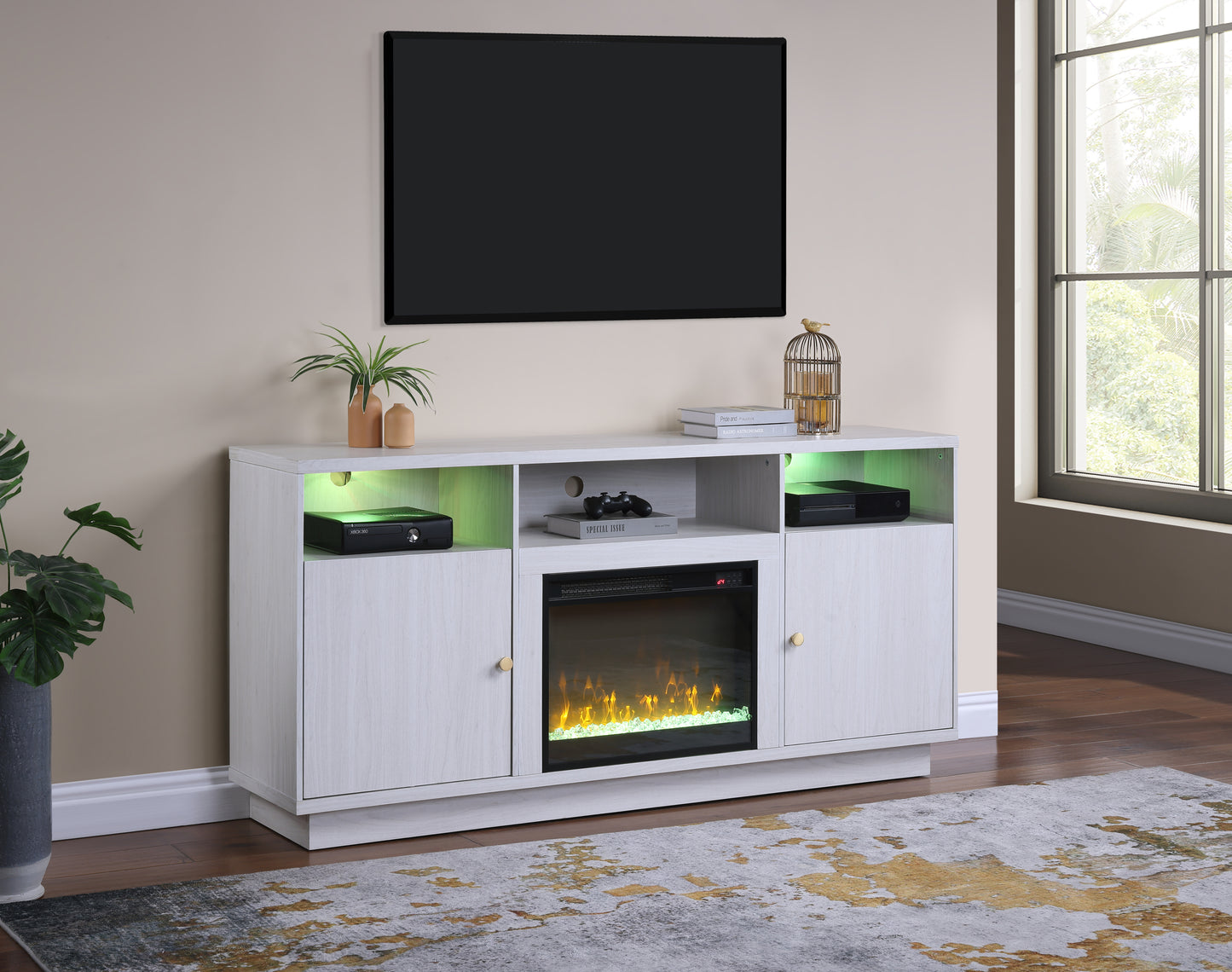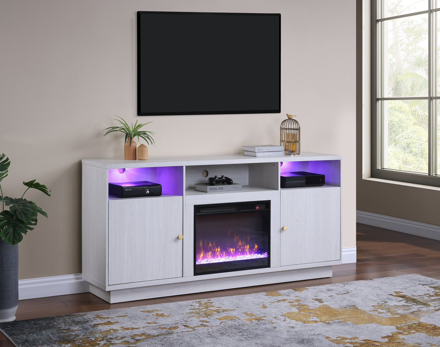 The Lucvara Fireplace Console TV Stand combines sleek design with cozy functionality. With a beautiful finish, it accommodates large flat-screen TVs and includes integrated LED lighting for a warm, modern glow. Featuring spacious cabinets and shelves, it offers ample storage for electronics and decor. The built-in electric fireplace with heater function adds both warmth and ambiance, making it a perfect centerpiece for any living room.
