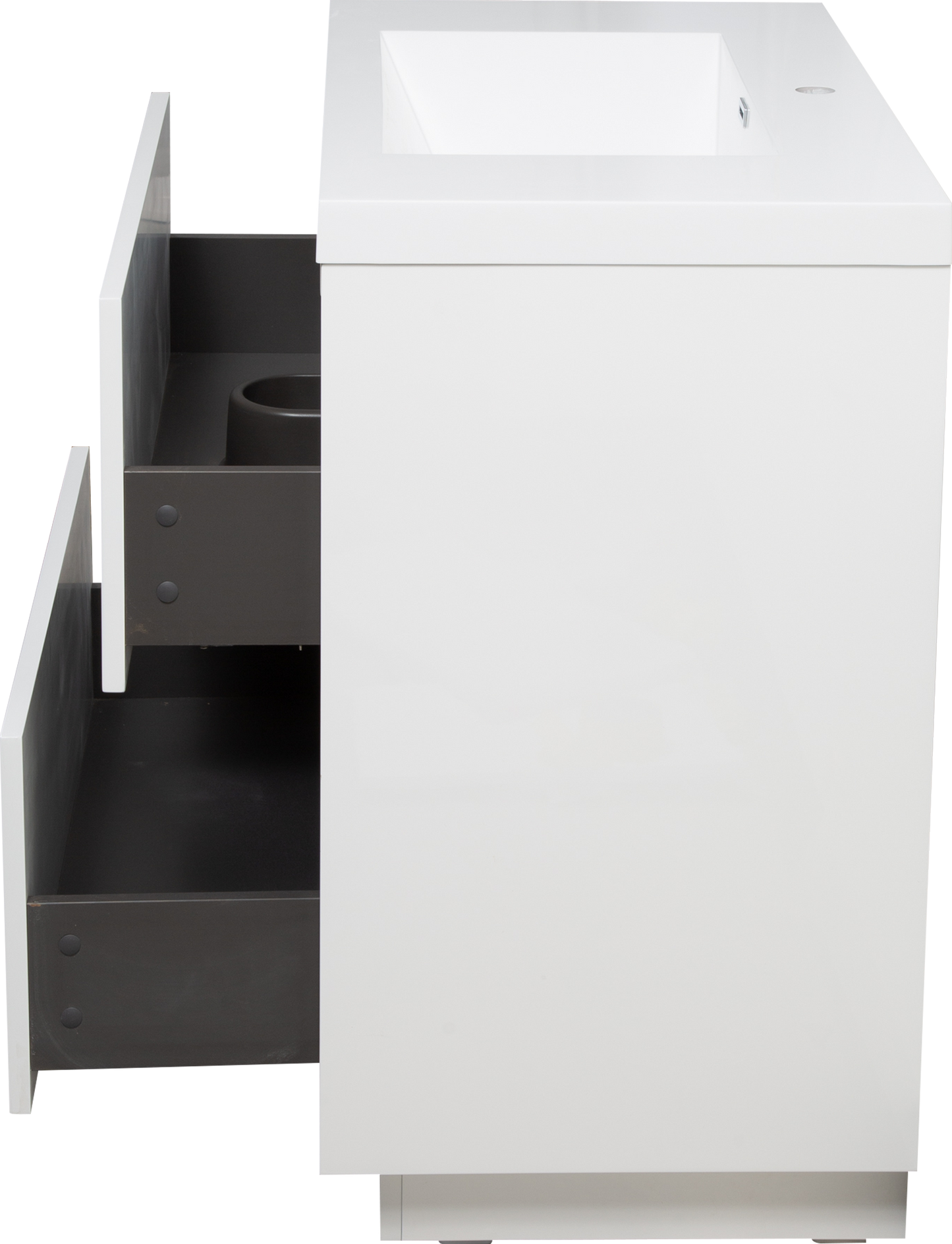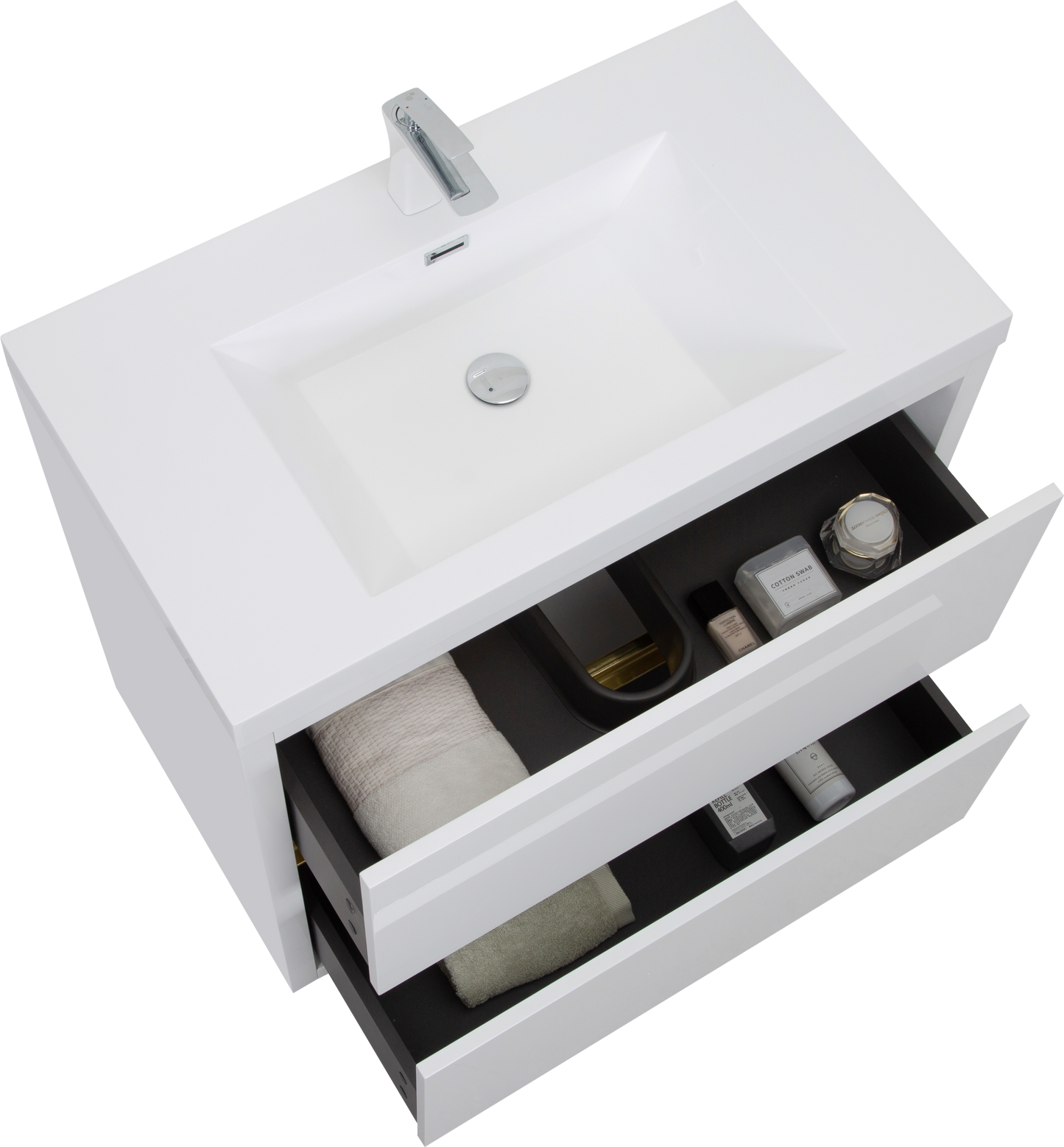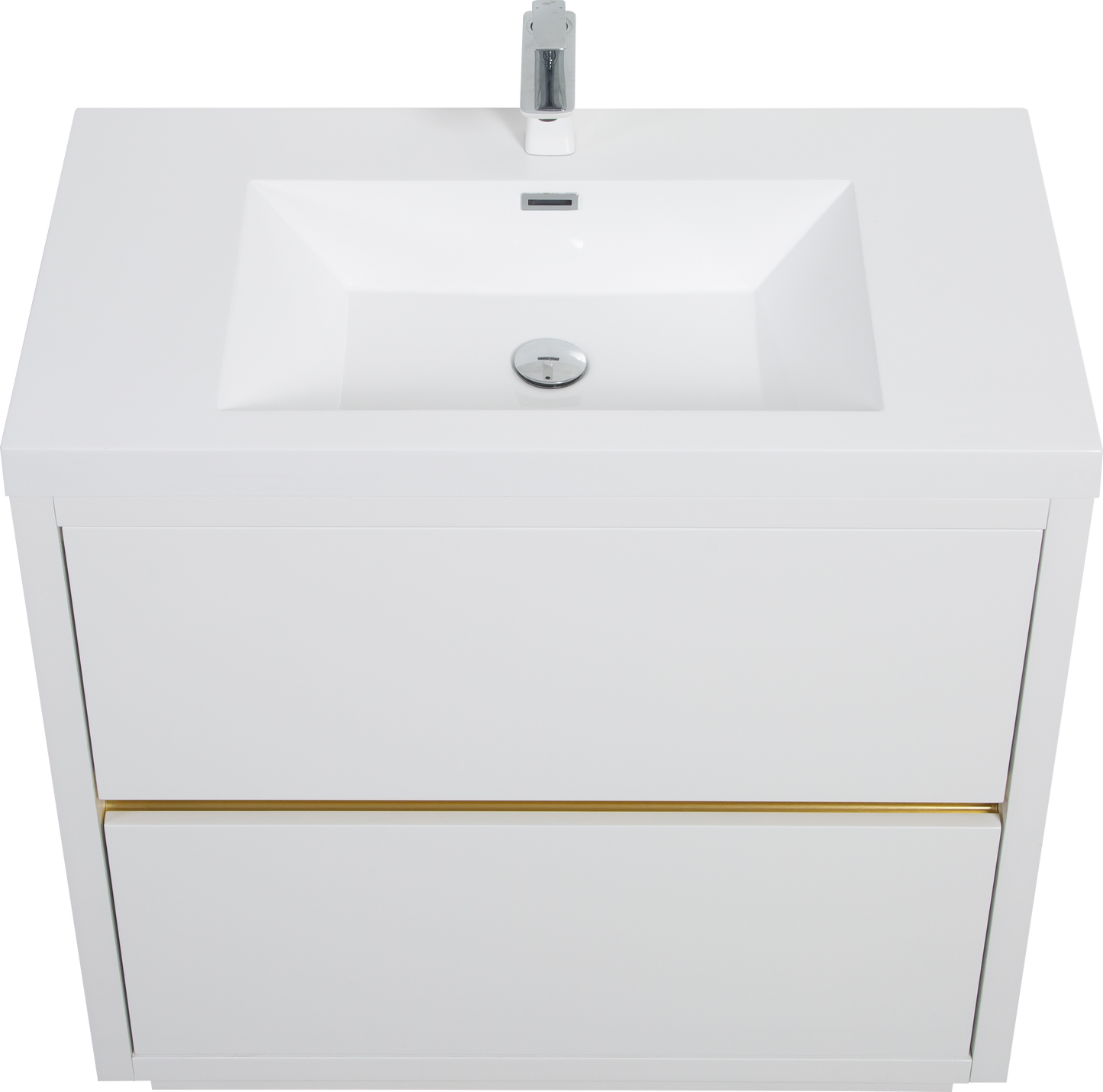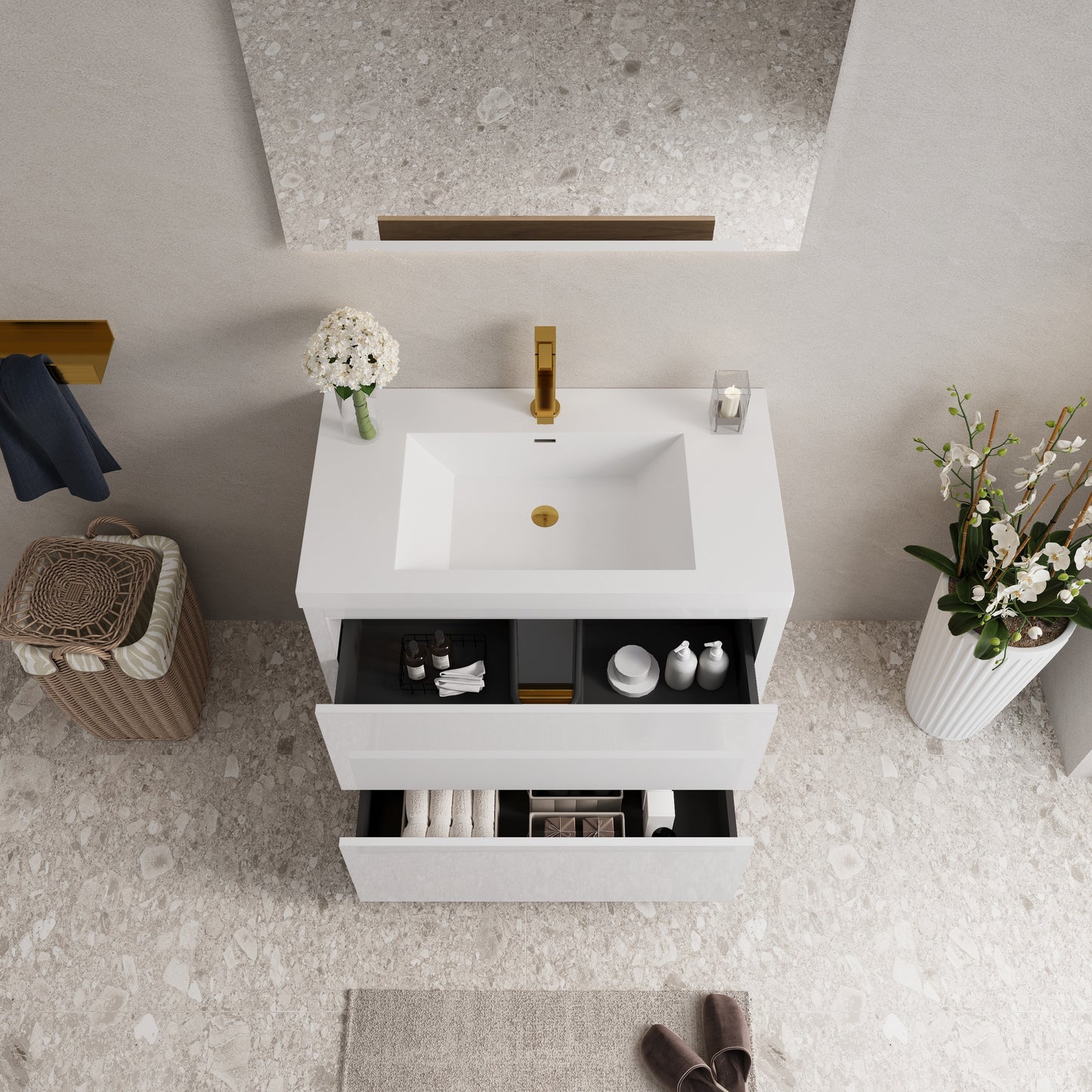 Lucvara 36" Freestanding Bathroom Vanity with Sink – Glossy White Vanity Cabinet with Stone Resin Countertop, Soft Close Drawers, Bathroom Storage