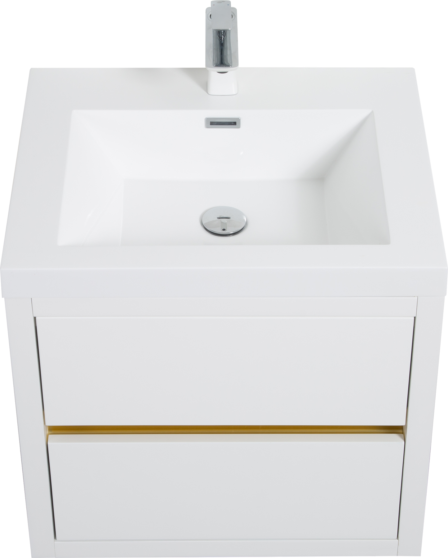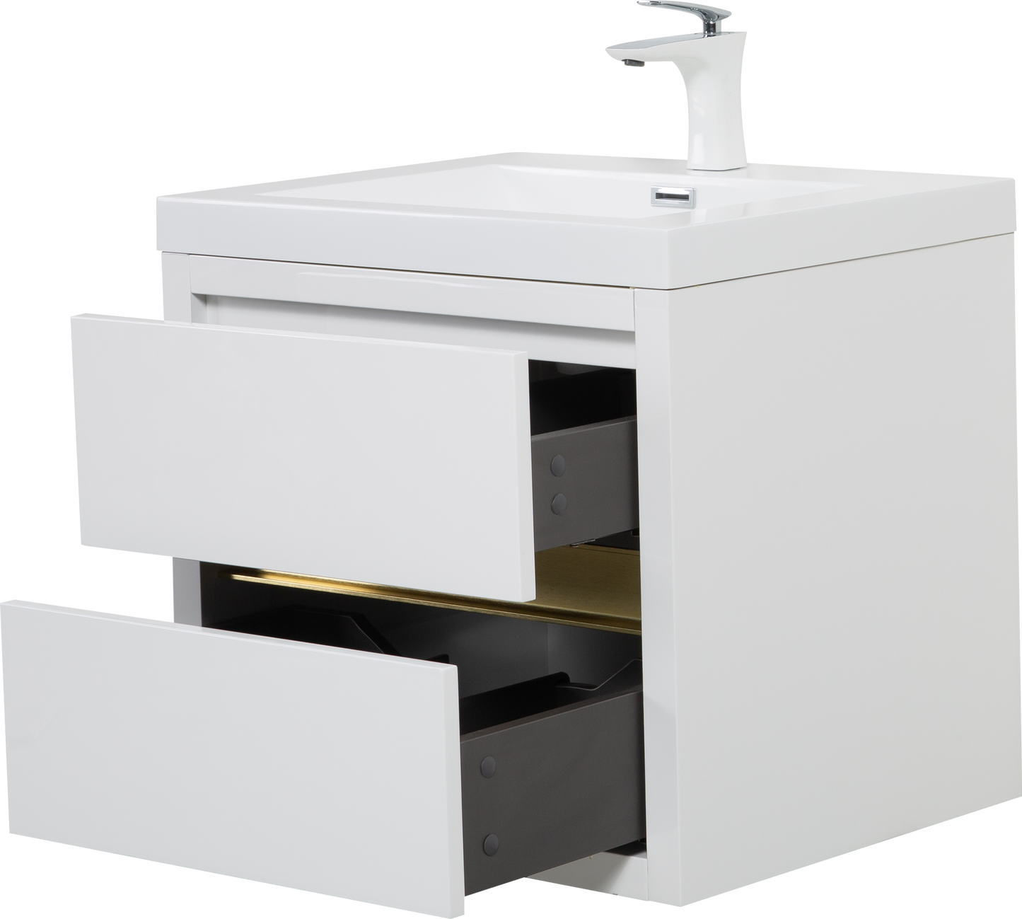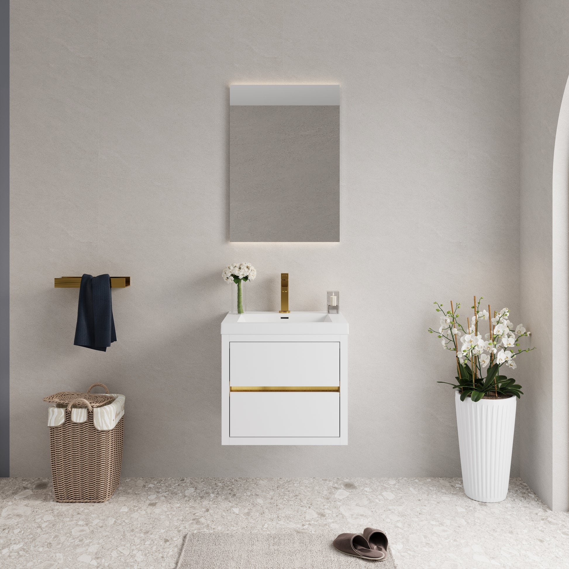Lucvara 24" Wall-Mounted Bathroom Vanity with Sink – Floating Bathroom Storage Cabinet with Stone Resin Countertop, Soft Close Drawers, Glossy White