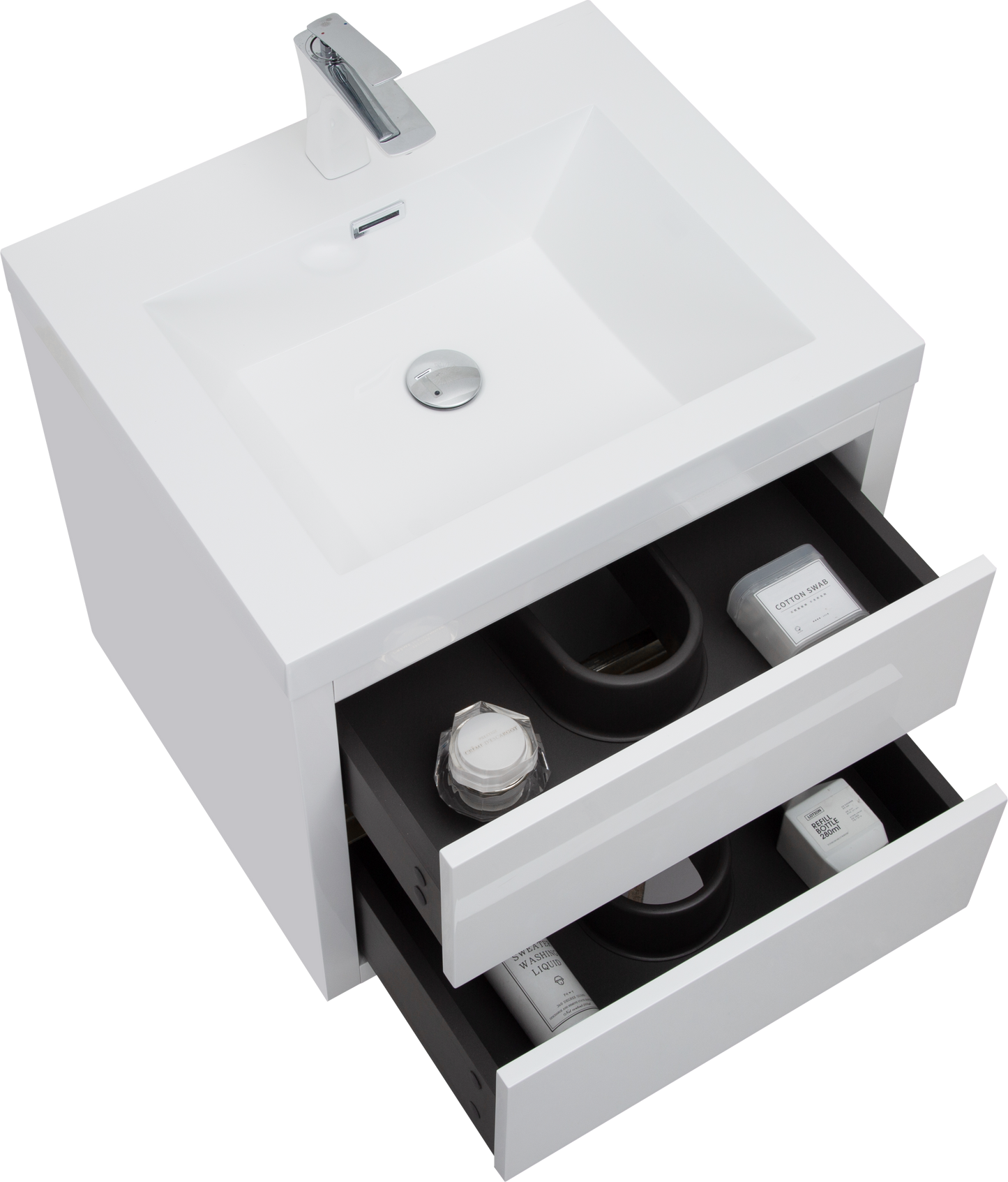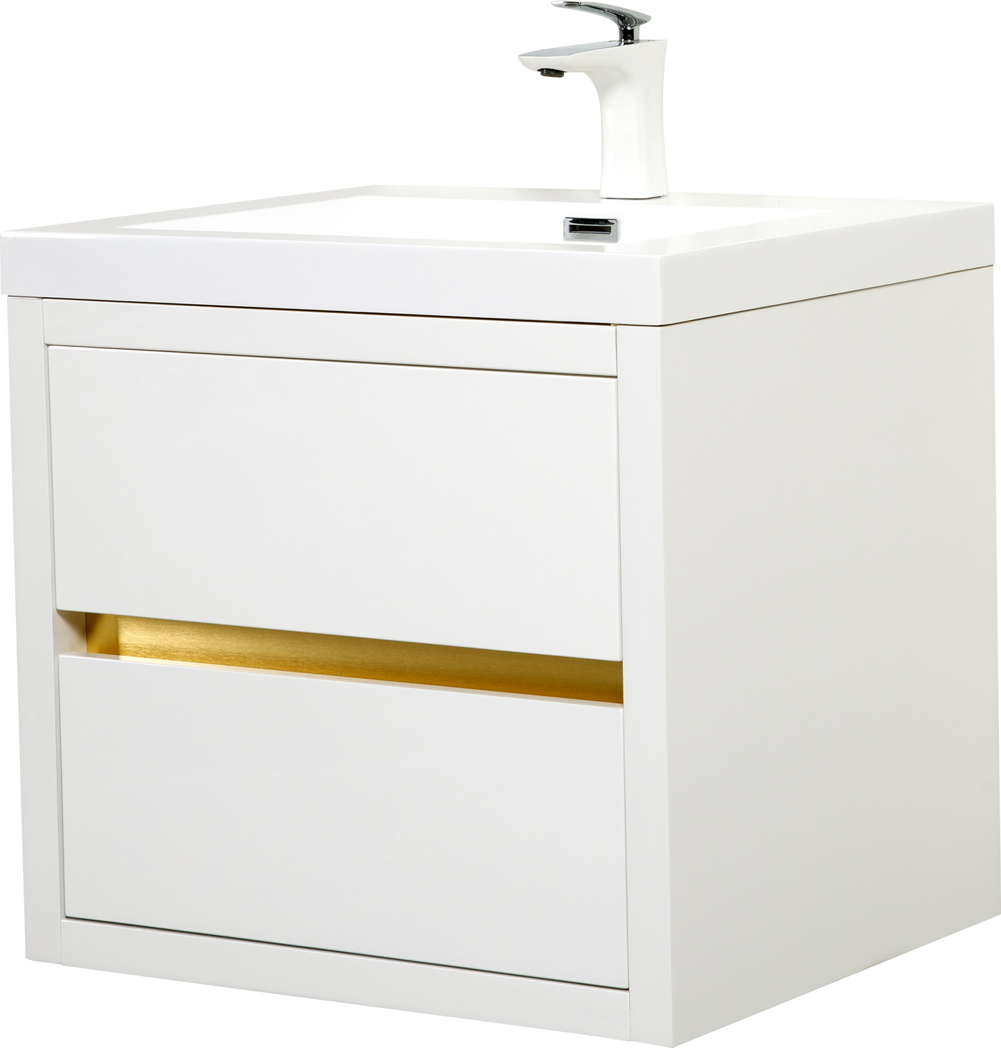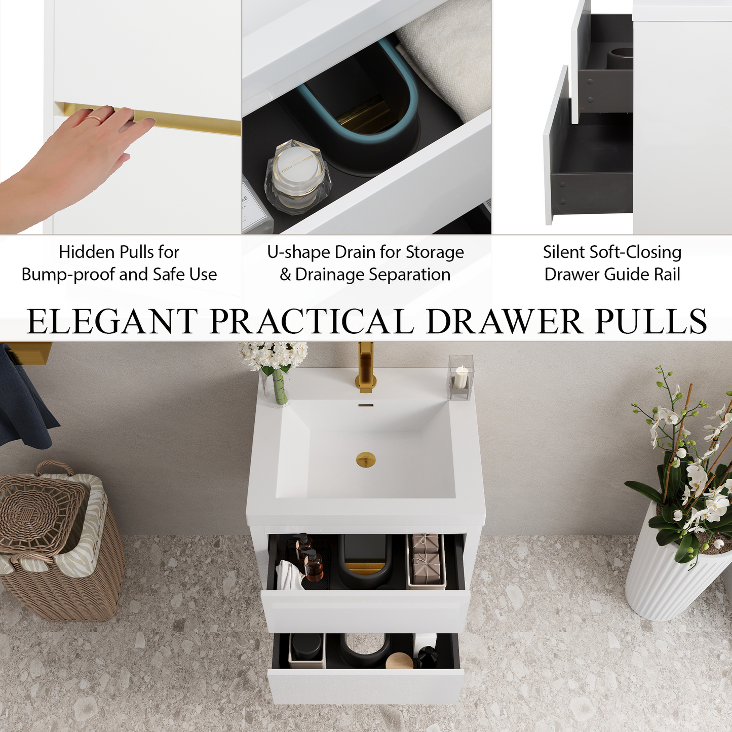 Lucvara 24" Wall-Mounted Bathroom Vanity with Sink – Floating Bathroom Storage Cabinet with Stone Resin Countertop, Soft Close Drawers, Glossy White