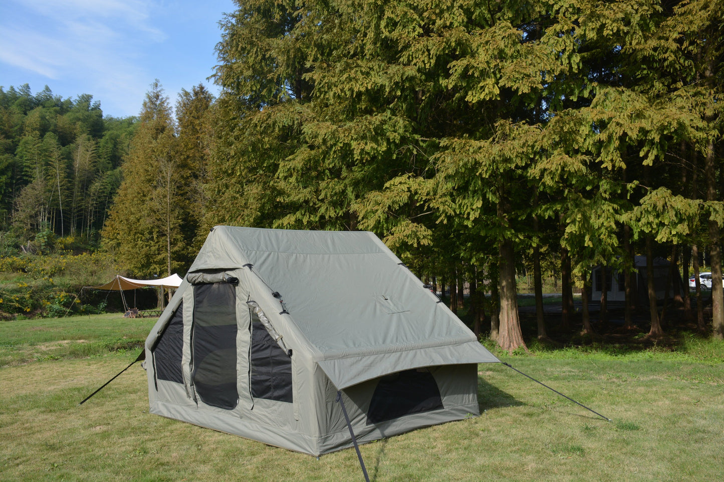 The inflatable camping tent features an Innovative Inflatable beam frame,no need for complex rods; setup and storage are a breeze. and you can have the tent ready in just 5 minutes. Compared to traditional camping tents, it is much simpler to set up and quicker to pack away.