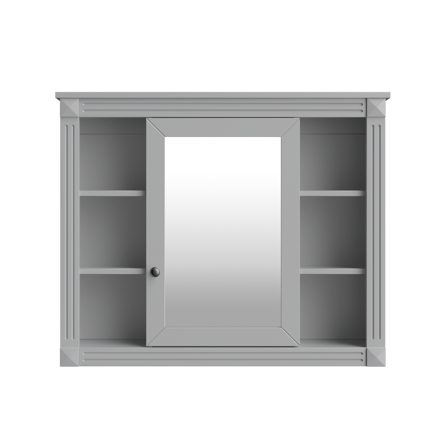 This wall-mounted mirror cabinet perfectly combines modern design with excellent functionality. It is made of high-quality MDF board, which is durable and environmentally friendly. The high-definition mirror provides clear reflections, making every use convenient and quick. The clever design combines hidden and open shelves to store personal items and keep the space tidy, while displaying commonly used items for easy access. Two built-in storage cabinets meet large-capacity storage needs and perfectly hide clutter. The three-layer adjustable storage board allows you to flexibly adjust the storage space according to your needs and adapt to the storage of different items. The included towel rod design allows you to easily hang towels or clothes, increasing the practicality and convenience of the bathroom. Whether it is the bathroom, bedroom or other space, this mirror cabinet can provide a neat, practical and beautiful storage solution to improve the quality of your home life.