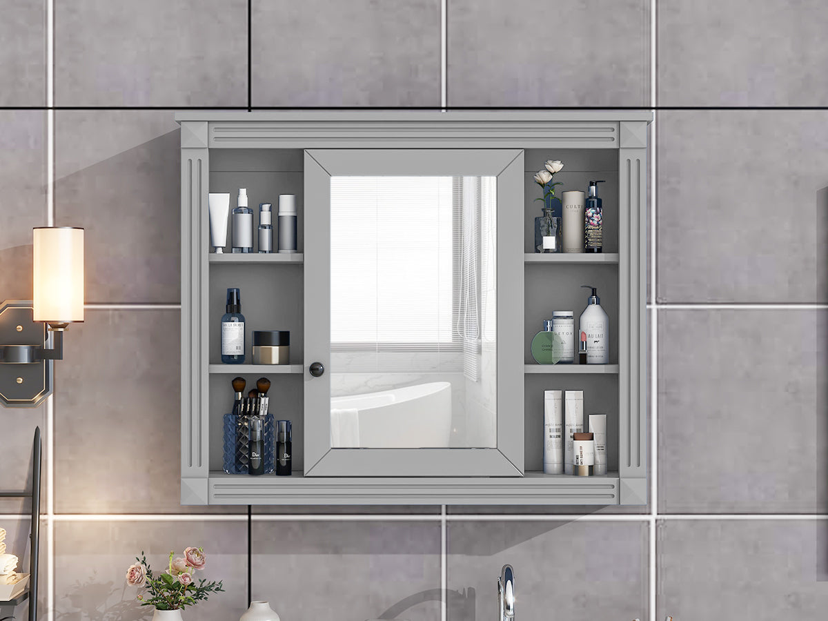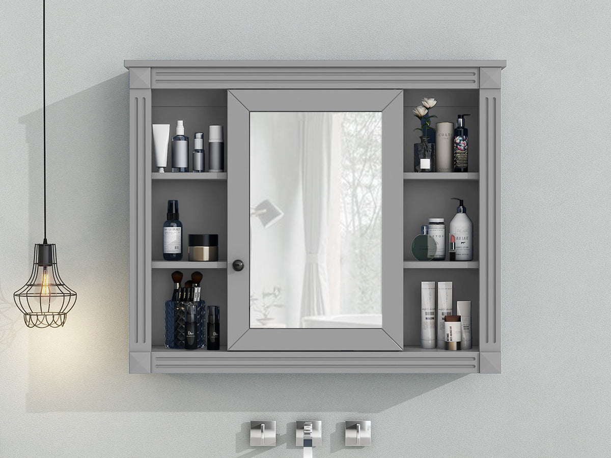 Lucvara 35'' x 28'' Wall Mounted Bathroom Storage Cabinet – Modern Mirror Medicine Cabinet with 6 Open Shelves, Wall Cabinet for Bathroom (Vanity Not Included)