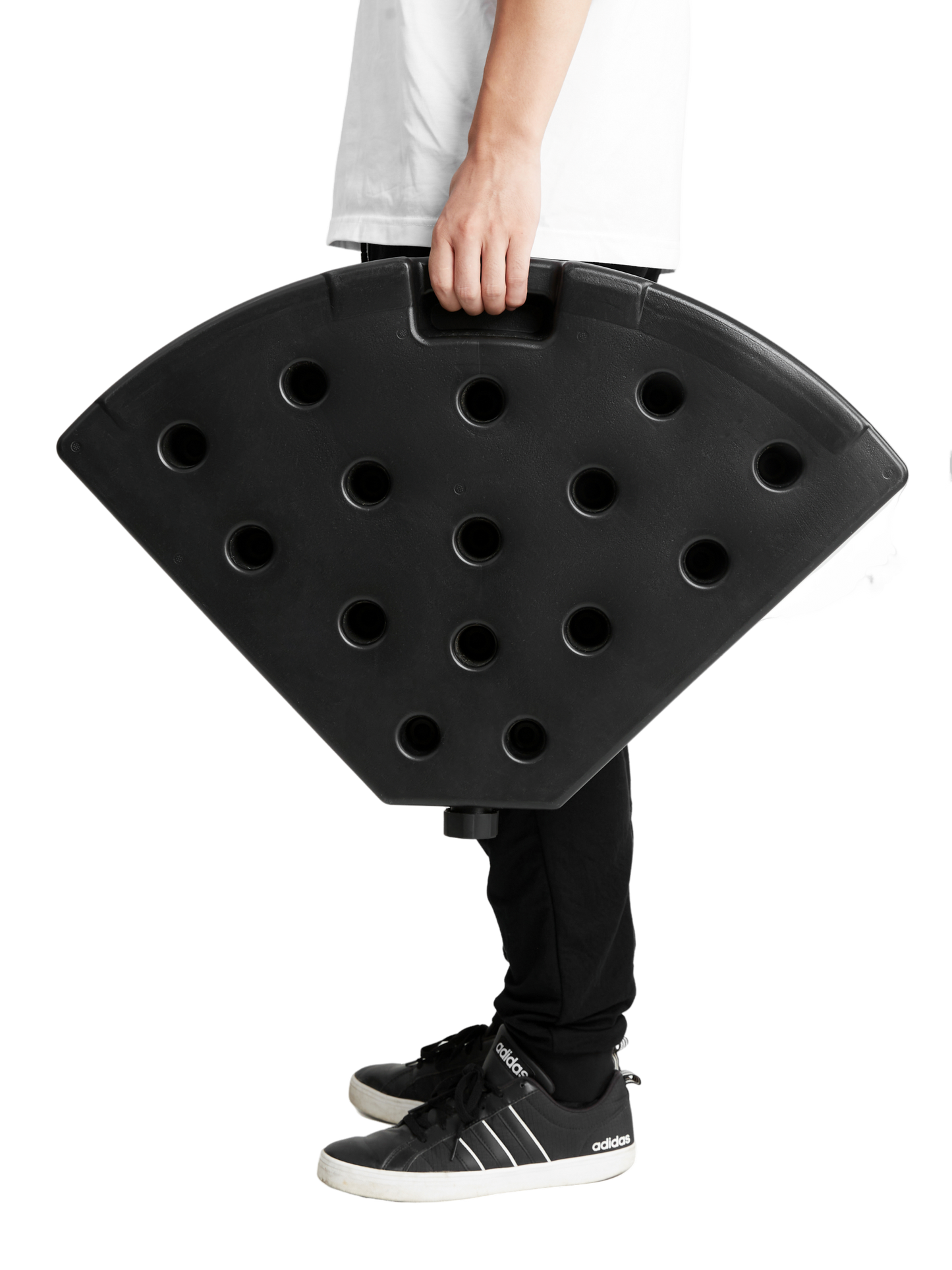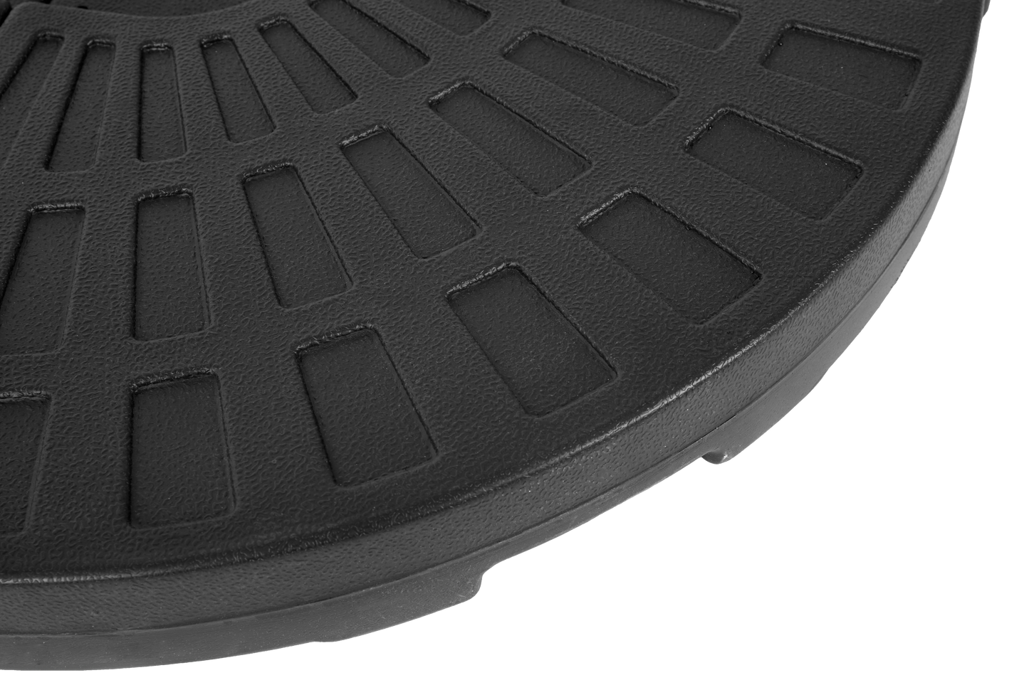 - Filled with Water/Sand: This round umbrella base can be weighed with 42 pounds(each piece) of sand or 11.3 liters of water(each piece). You can also mix some water and sand to increase weight